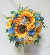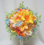 ダリアとリボンのラウンドブーケ